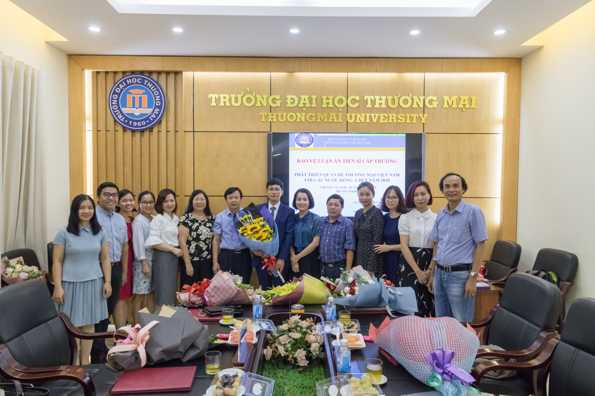 Ngày 08/10/2019, tại Phòng họp số 2 nhà I, Trường ĐH Thương mại đã tổ chức Lễ bảo vệ luận án tiến sĩ cho nghiên cứu sinh Dương Hoàng Anh, chuyên ngành Quản lý kinh tế (mã số 934.04.10), đề tài luận án “Phát triển quan hệ thương mại Việt Nam với các nước Đông Á đến năm 2030” với sự hướng dẫn khoa học của PGS.TS. Hà Văn Sự và TS. Thân Danh Phúc